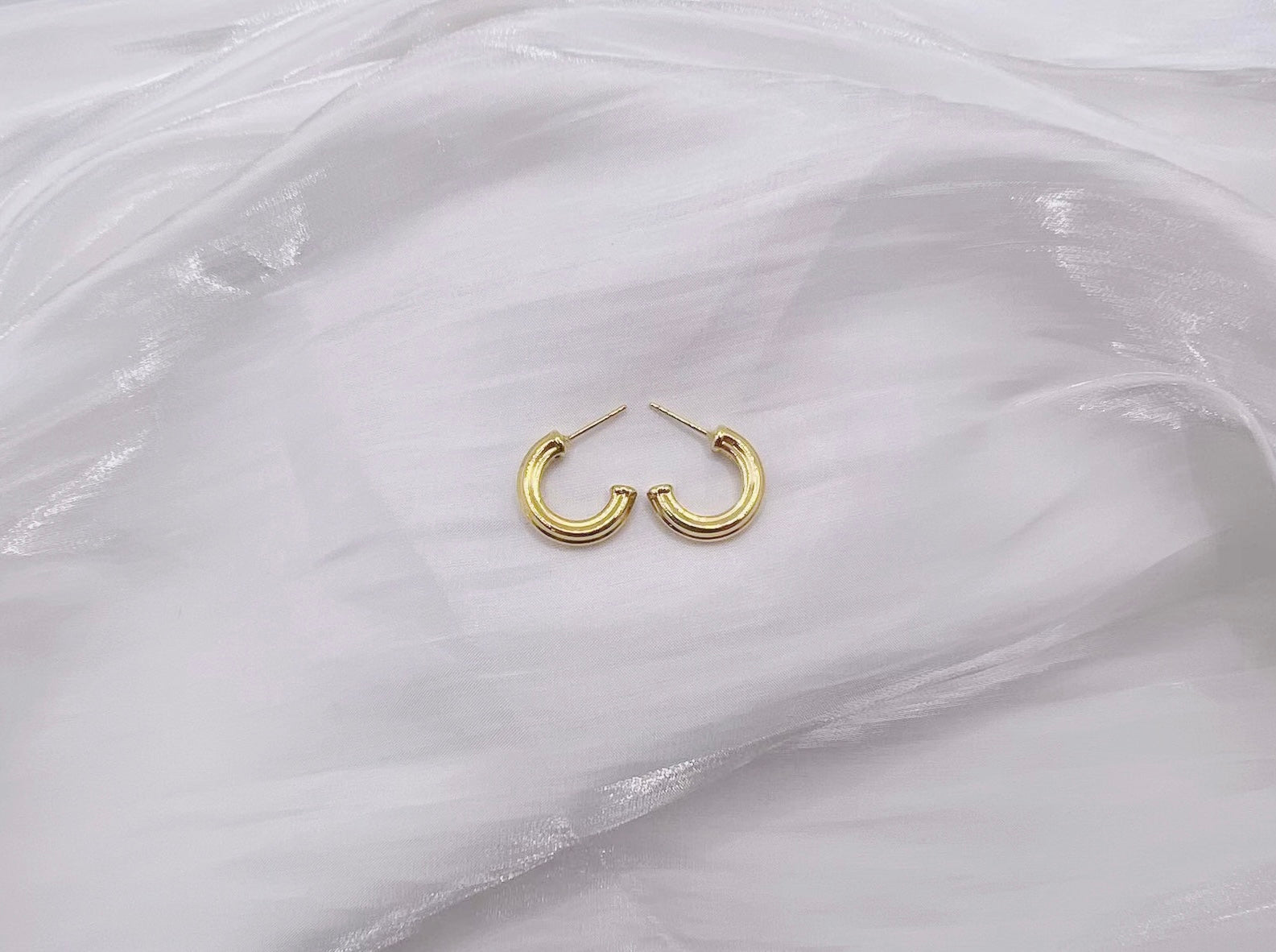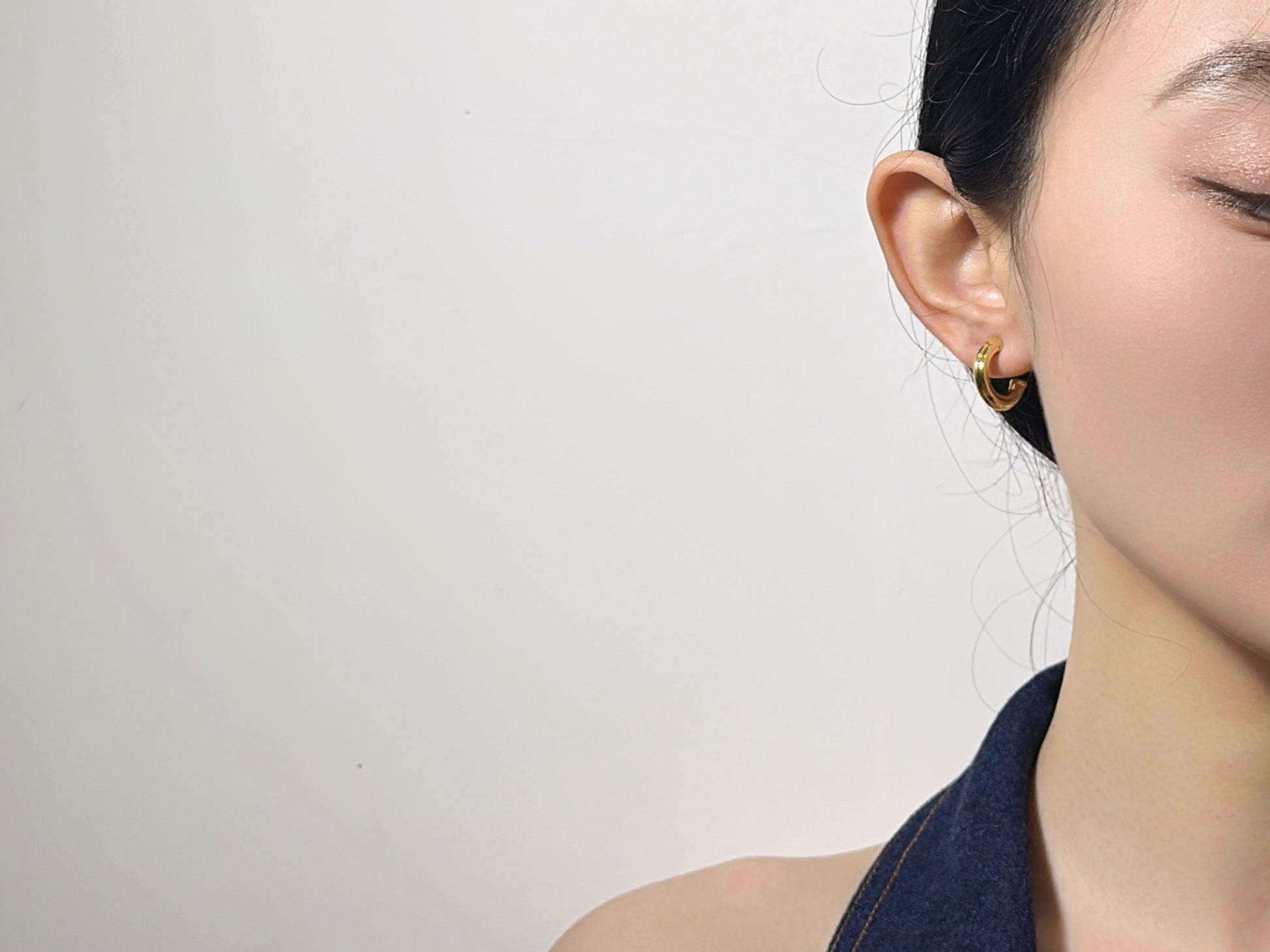 Crafted from pure 18K Gold, and meticulously enhanced through an exacting and sophisticated electroplating process, these 18K Gold Half Hoop Earrings boast an exquisitely smooth surface and an enduring brilliant luster, exuding an ineffable minimalist beauty and luxurious texture.