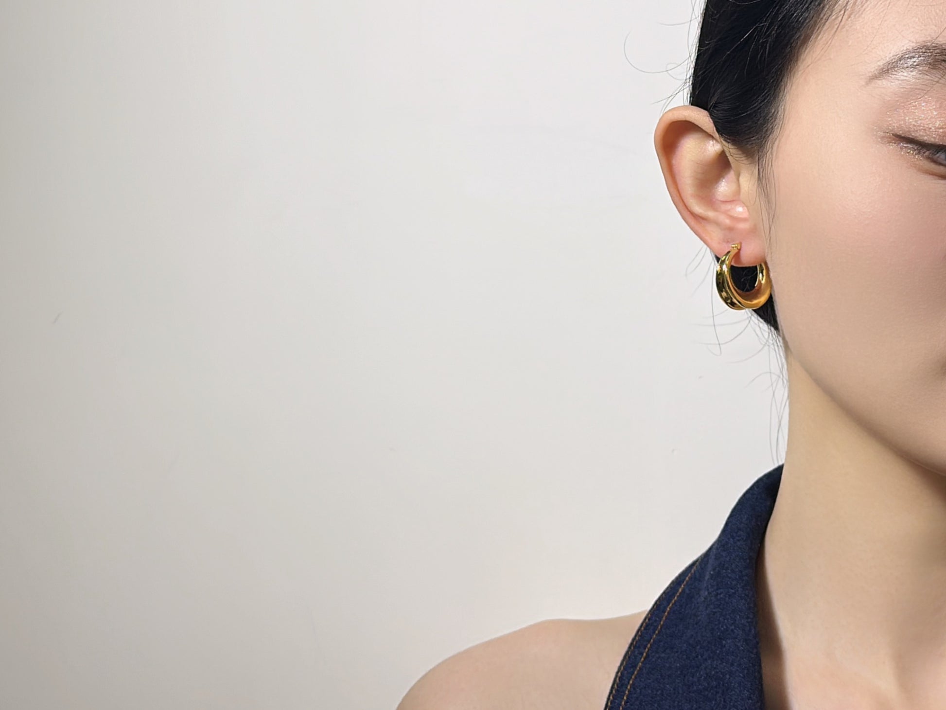 Crafted from pure 18K Gold, and meticulously enhanced through a rigorous and exquisite electroplating process, these 18K Gold Canyon Huggie Earrings boast an exquisitely smooth surface and an enduring brilliant luster, exuding an ineffable minimalist beauty and luxurious texture.
