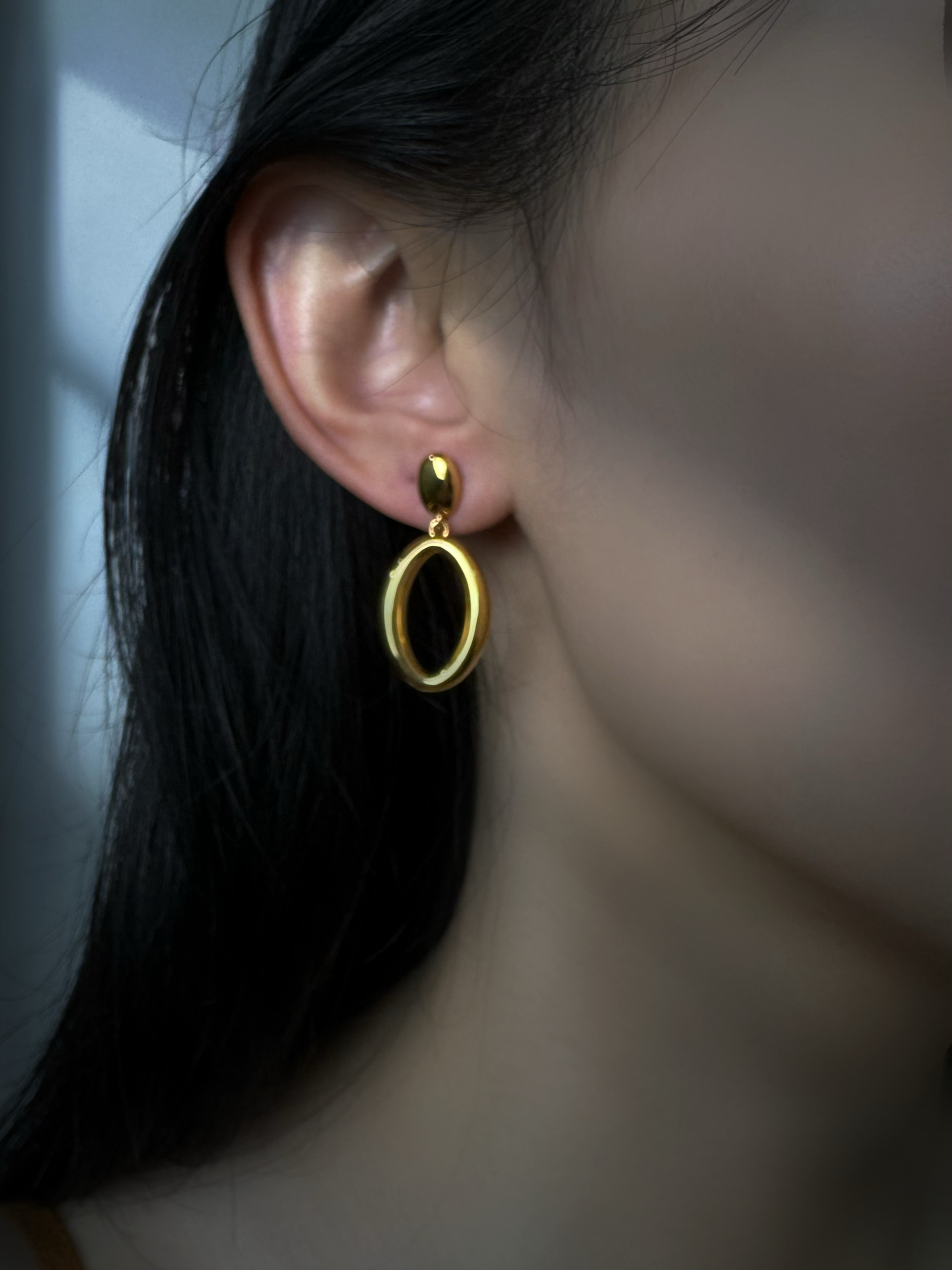 The opulent texture of 18K Gold harmoniously fuses with the lyrical lines of the oval design, weaving a captivating poetic narrative that allows your every precious moment to quietly unfold, blossoming in the gentle currents of time. May these 18K Gold earrings become your cherished daily muse, a poetic companion that elegantly accentuates your unique grace and inherent allure.