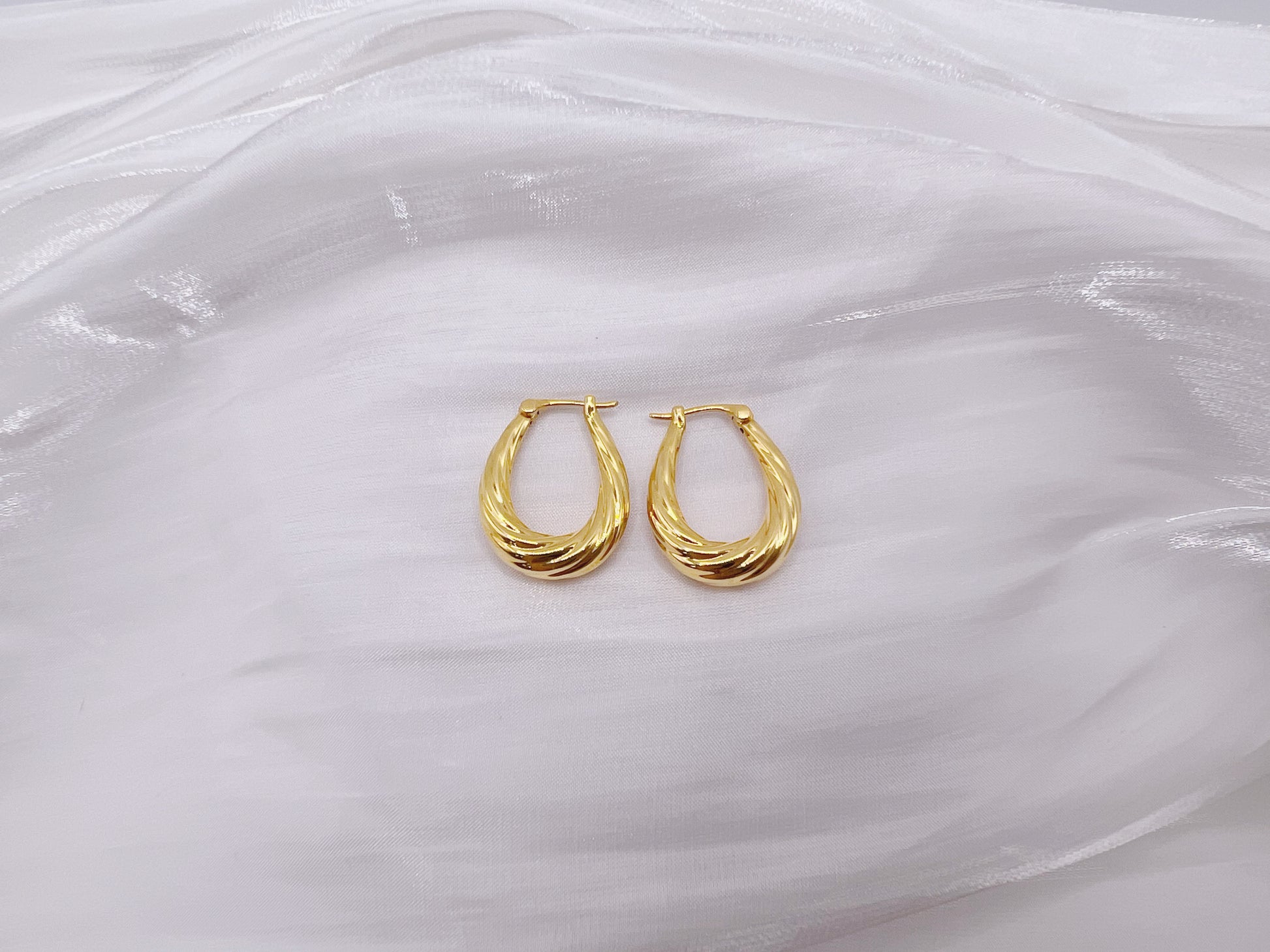 Crafted from pure 18K Gold and enhanced by exquisite electroplating, these 18K Gold Wavy Huggie Earrings boast an exquisitely smooth, brilliant luster, exuding minimalist beauty and luxurious texture.
