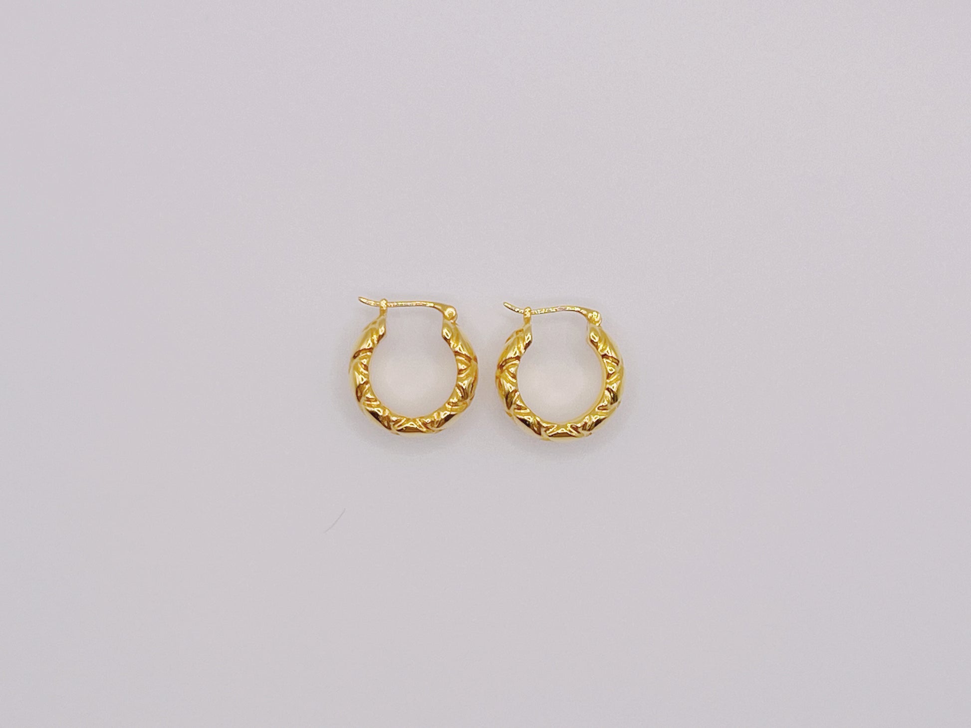 The dazzling brilliance of 18K Gold intricately interwoven with the precise contours not only embellishes your ears but also whispers tales of perseverance and transcendence with every play of light and shadow.