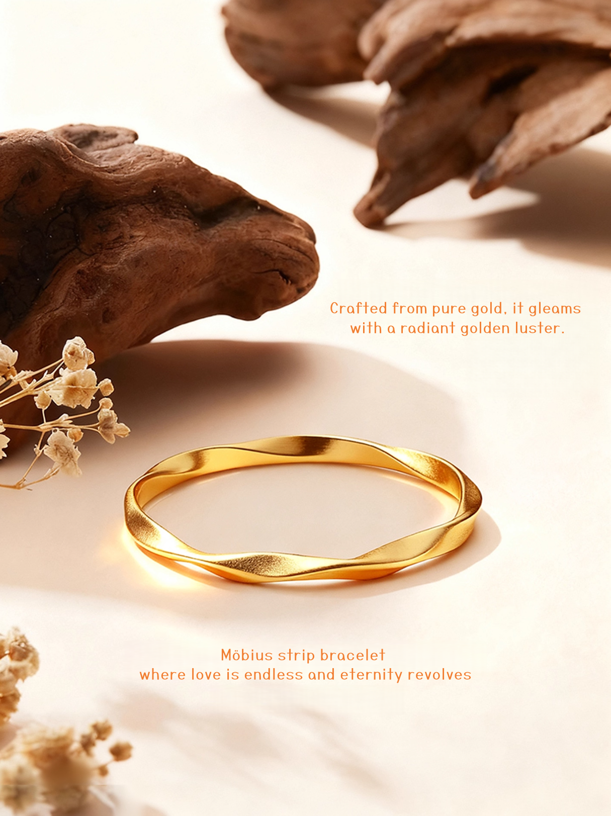 In the interplay of light and shadow, upon the modest space of the wrist, a piece of jewelry imbued with philosophical and mathematical elegance gracefully encircles the arm—this is the Golden Silver Möbius Strip Bracelet.**